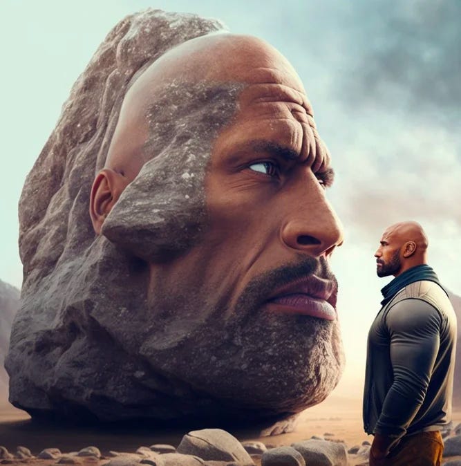 Is the Rock’s face as an easter island head delightful AI art? Absolutely. Does the Rock have any legitimate claims as to how the image is used? Unclear! (source)