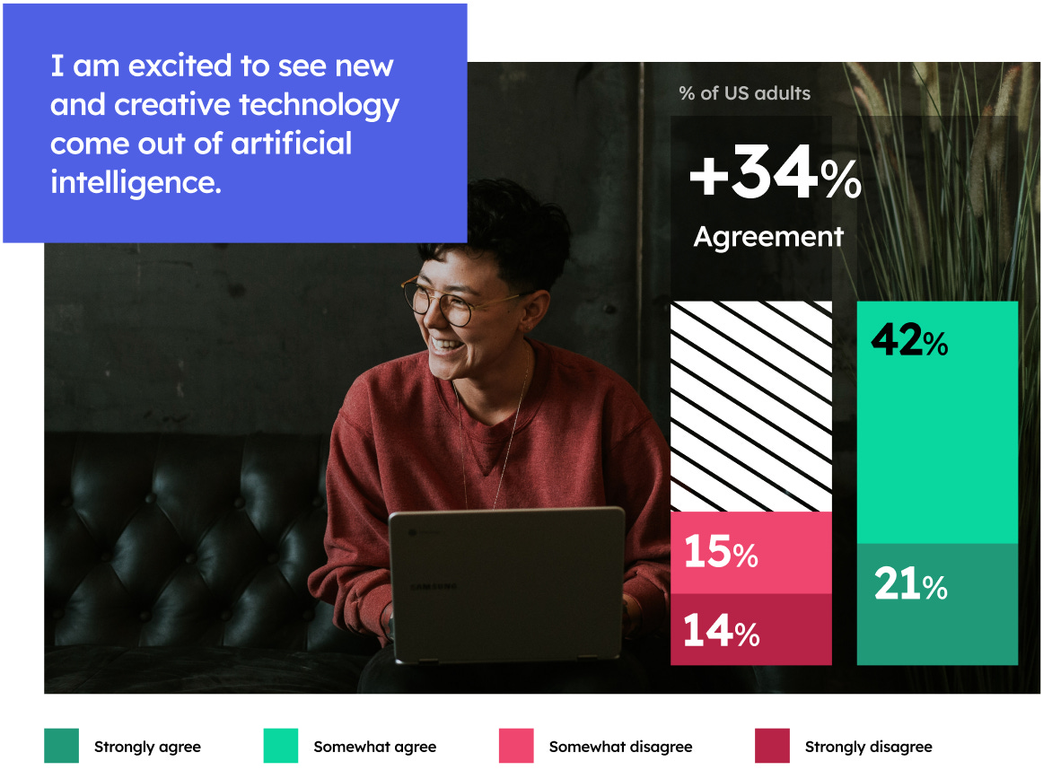 Awareness of AI is one thing, but it’s important to also have a sense of the sentiment behind that awareness. Are people scared out of their minds? Thrilled? Apathetic?